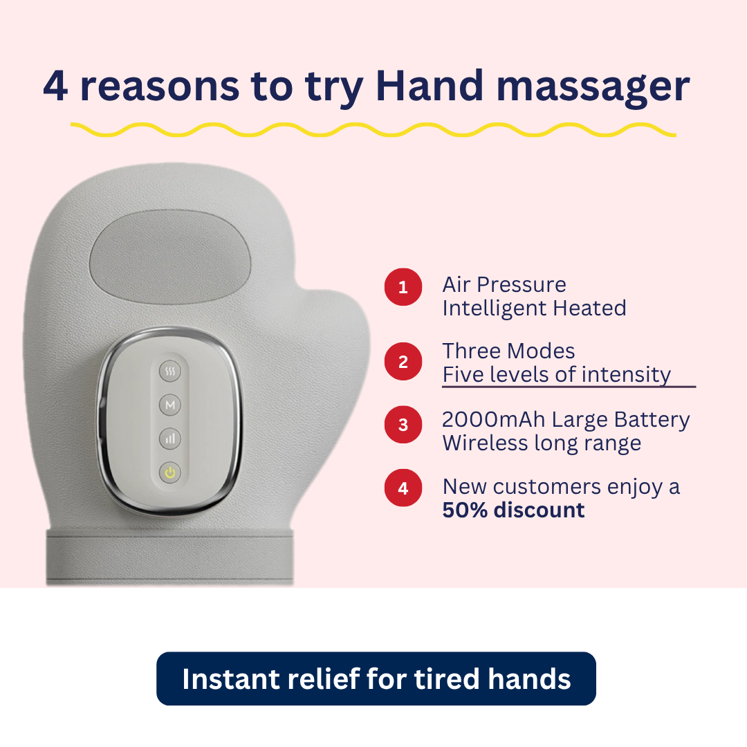 Soothe tired hands with intelligent air compression and gentle heat that improve circulation and ease tension in minutes.